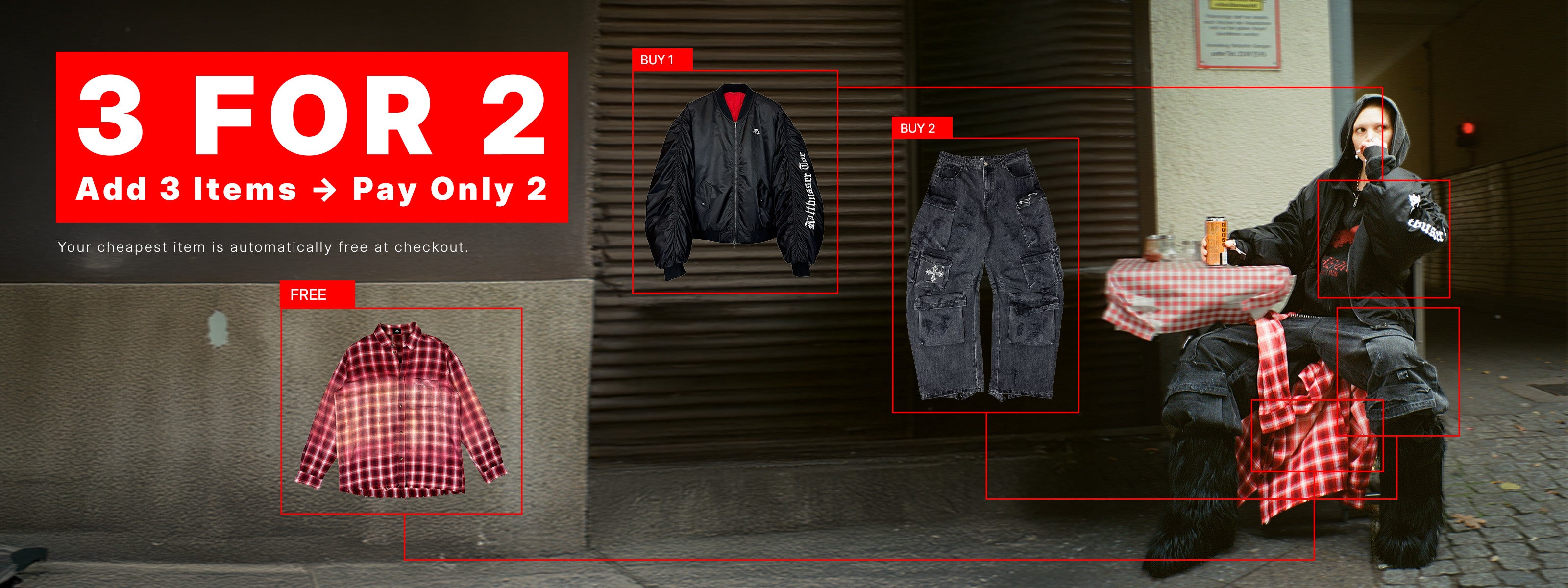 Mix any styles — the cheapest one is free at checkout.