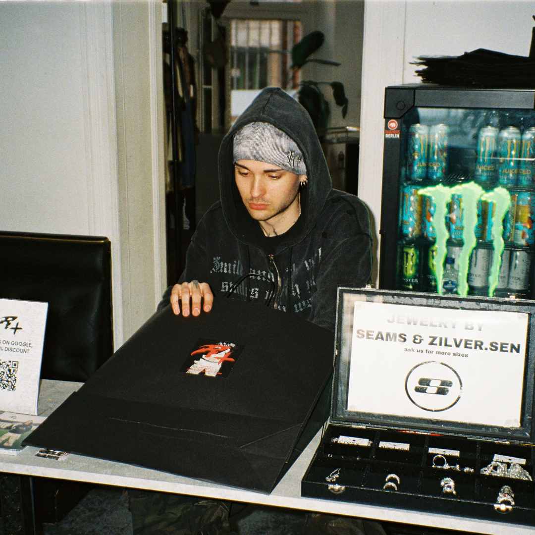 Next to our Online-Shop, we opened our first physical store in January 2024. Come by, try on the latest pieces from us, Search&Destroy, Goos, SPG, Seams, Morgenstern and many more & enjoy a free “Monster Energy”.