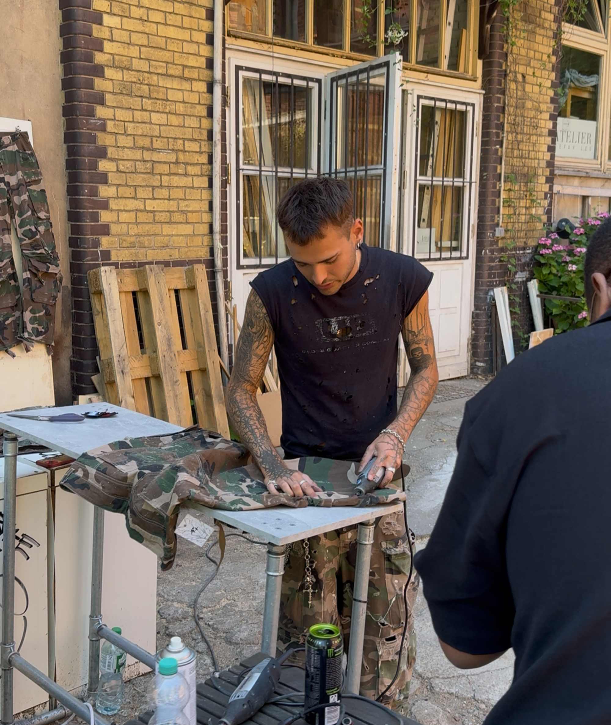 The final finishing steps such as distressing the pants, attaching patches or applying color splashes are all done by hand in our Studio in Berlin-Kreuzberg. This makes our pieces unique.