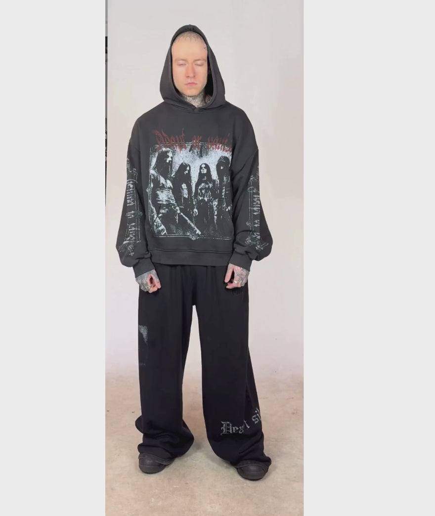 Our Dead Silent Hoodie is cut from heavy premium cotton in a Washed Out Black tone – built for everyday wear. Built to feel like the holy grail you dig up in a dusty vintage shop -the kind of metal band hoodie that looks like it survived decades of shows, sweat, chaos and life.