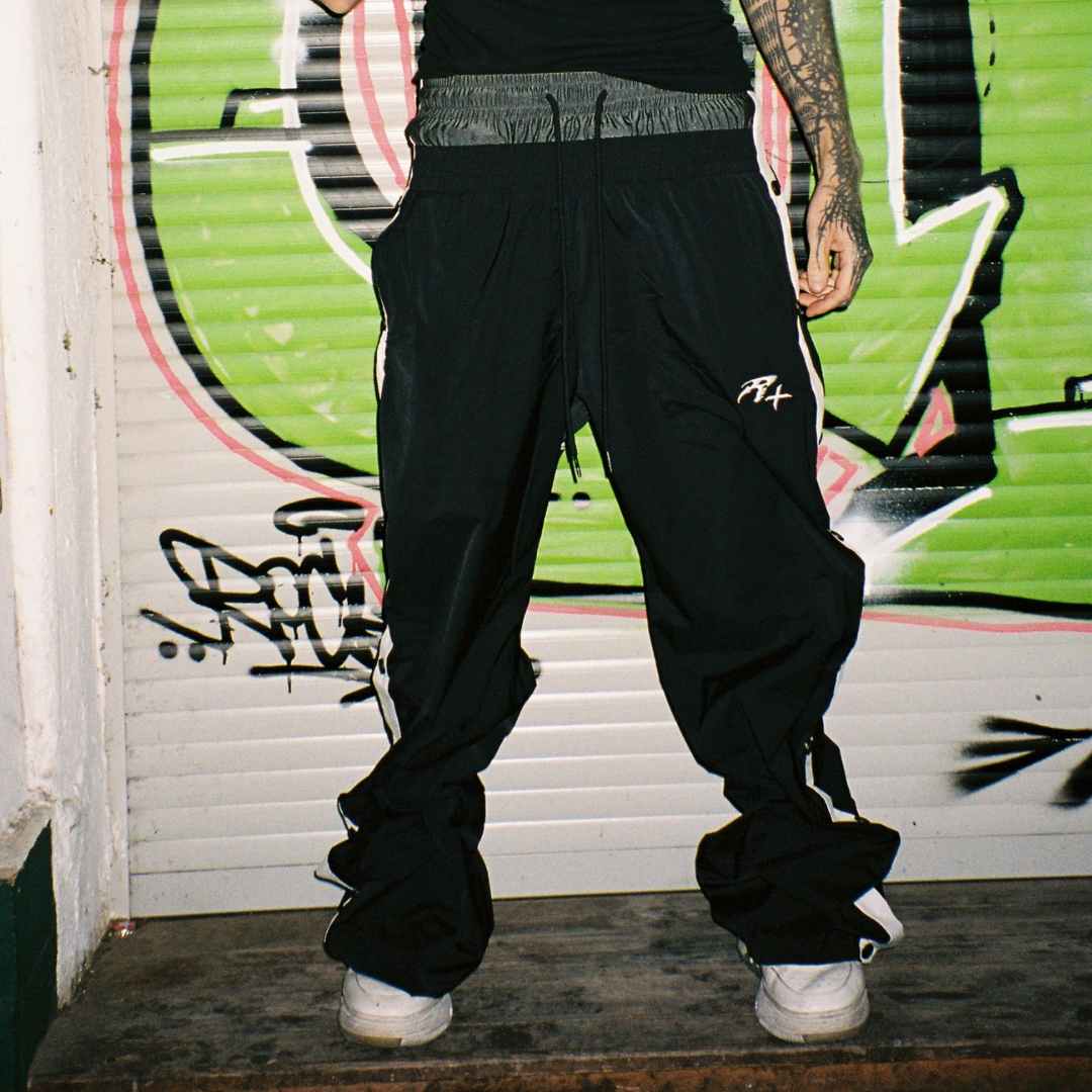 With these double waisted Trackpants, we take a fresh approach to an essential piece of clothing. The double, tiered waistband and side button placket create a baggy look reminiscent of the early 2000s. The bottom 3 buttons can be undone so that the trousers fall perfectly and can be adjusted to fit any shoe.