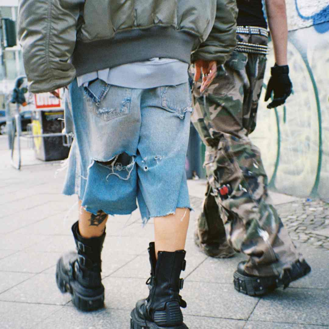 In the SS24 collection, we are once again venturing into new product types and new materials. For example, we are working with denim material for the first time in these pants. The final finishing steps such as distressing the pants, attaching the patches and applying the color splashes are all done by hand in our Studio in Berlin-Kreuzberg. The camo pattern can also vary depending on the availability of the fabrics. This makes every single pants unique.