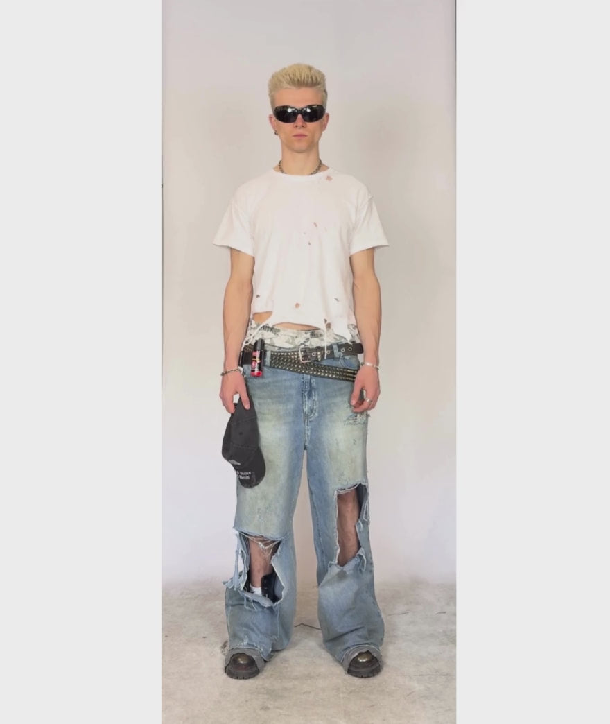 DESTROYED DENIM PANTS | UNISEX