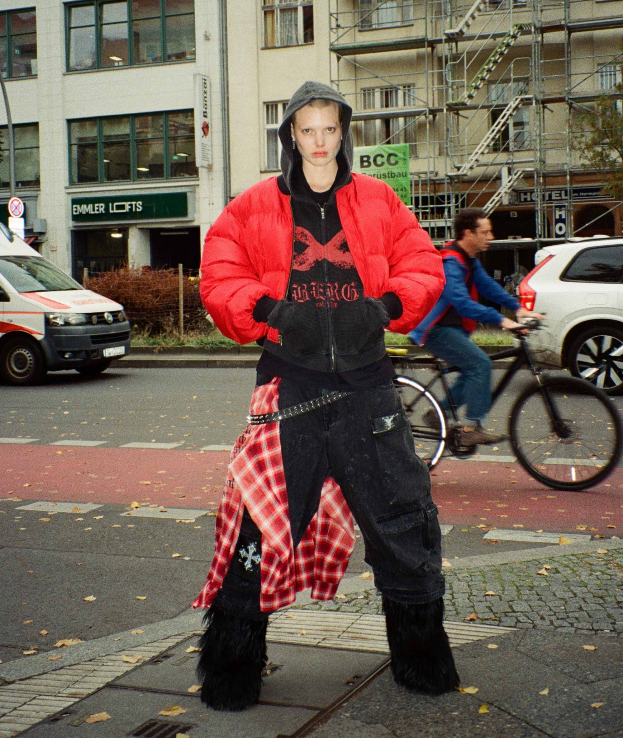 The name says it all. The bomber is super puffy and creates a tough, anabolic look with its cropped cut and oversized sleeves. In Germany we would say “Kante”. The side profile of the jacket could also be described as a C-shape.
