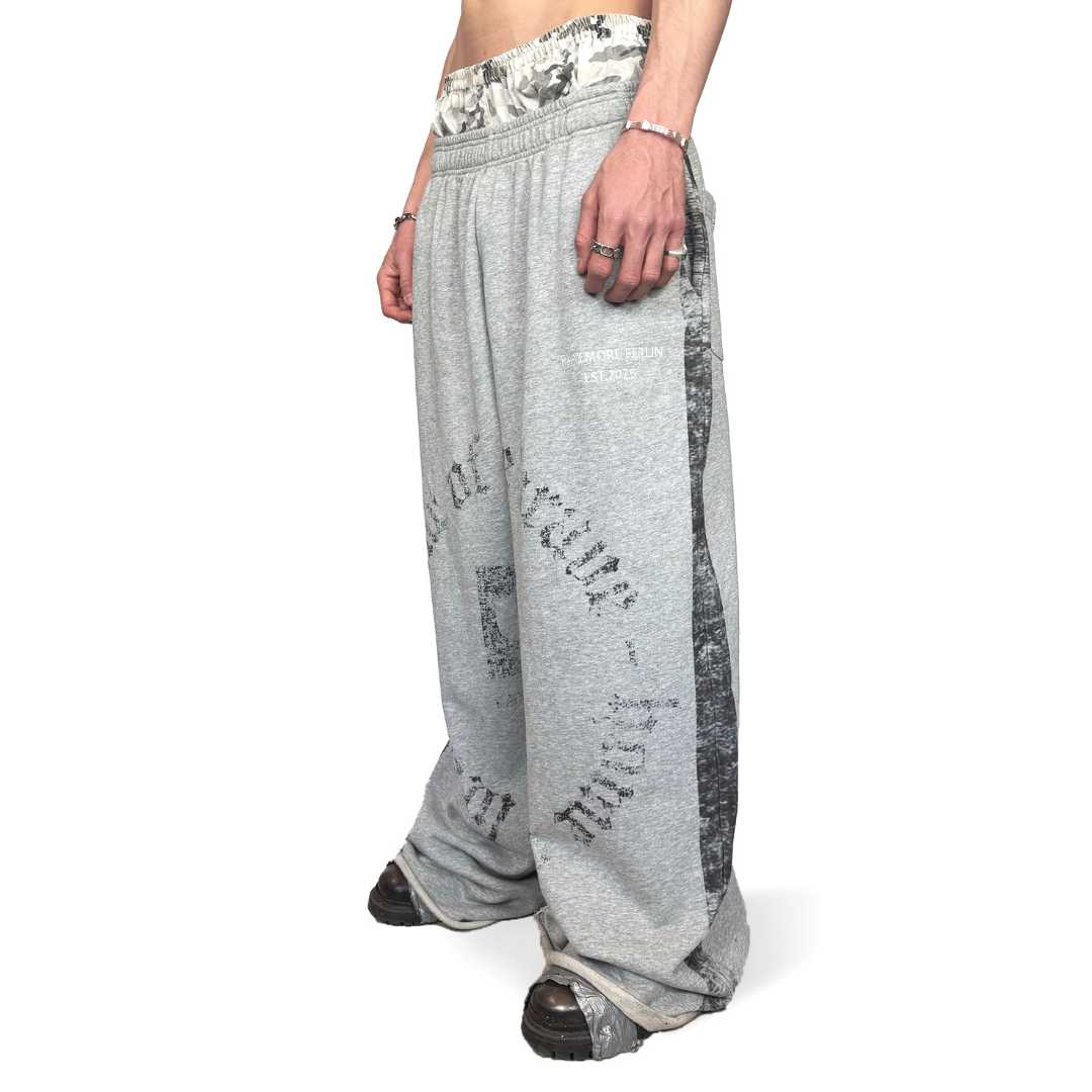 The grey sweatpants are oversized and pleasantly heavy thanks to the 100% cotton fabric.