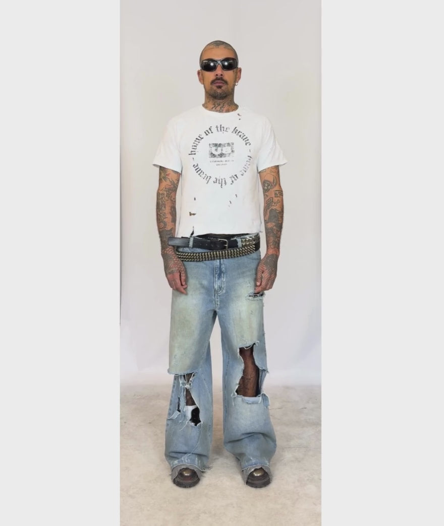 Distressed T-Shirt made of light cotton with a slightly cropped cut.